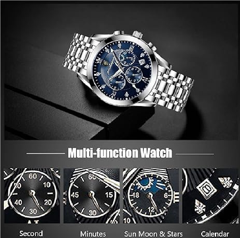 Questo orologio è dotato di diverse funzioni utili, tra cui visualizzazione del giorno/data e orologio 12/24 ore. La batteria al suo interno offre una durata di vita di 3 anni, garantendo un utilizzo a lungo termine senza preoccupazioni.